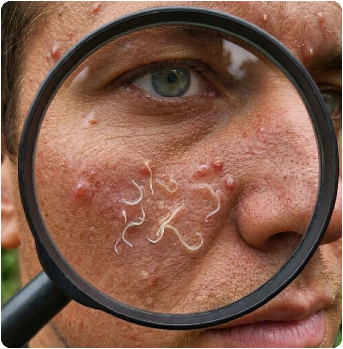Right now, parasites are breeding in your pores. Every 14 days they reproduce, create waste, bacteria feeds on that waste, inflammation explodes. Same spots. Same cycle.